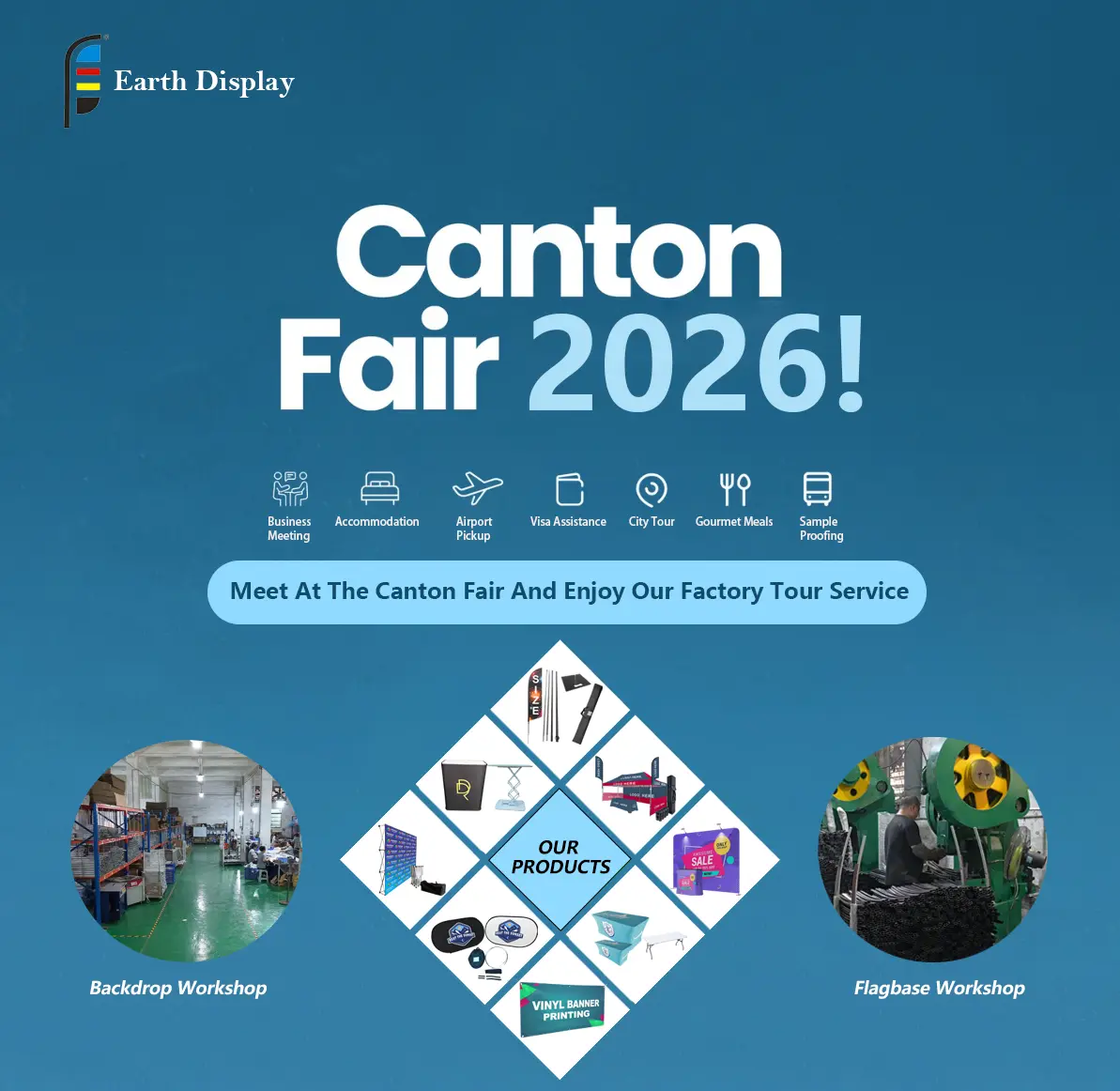 Tulemas on 2026. aasta kantoni mess ja me, Earth Display, loodame teid väga seal näha. Oleme valmistanud sulglippe, hüpikakende taustadekoratsioone, lipualuseid, kohandatud vinüülbännereid – põhimõtteliselt kõike näituste ja reklaamide jaoks – juba üle kümne aasta. Seekord tahame veebis rääkimise asemel näidata teile, mida me teeme, näost näkku.